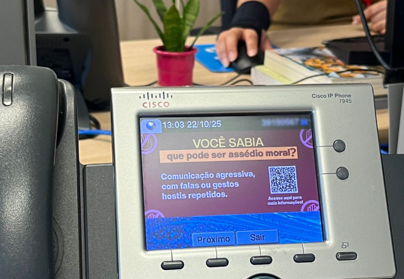 A ação se desenvolve em diferentes frentes. Nos telefones da Cidade Administrativa, um slide exibido nos displays mostrará, a cada semana, um lembrete direto sobre a importância do respeito aos colegas e informações conceituais sobre assédio. A mesma mensagem circulará nos descansos de tela dos computadores institucionais e será desdobrada nas redes sociais da OGE/MG ao longo dos próximos meses.