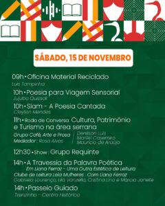 Em seu novo formato, a Vila Literária contará com uma programação diversificada, repleta de palestras, bate-papos, oficinas criativas, contação de histórias, sessões de cinema, feira de artesanato, passeio de trenzinho pelo centro histórico, apresentações musicais, intervenções artísticas e muito mais.