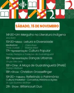 A Prefeitura de Guaratinguetá, por meio da Secretaria de Cultura, informa que de 14 a 16 de novembro nossa cidade receberá mais uma edição da Festa Literária de Guaratinguetá, dando vida à Vila Literária, que neste ano celebra o tema “Nossa História, Nosso Patrimônio”.